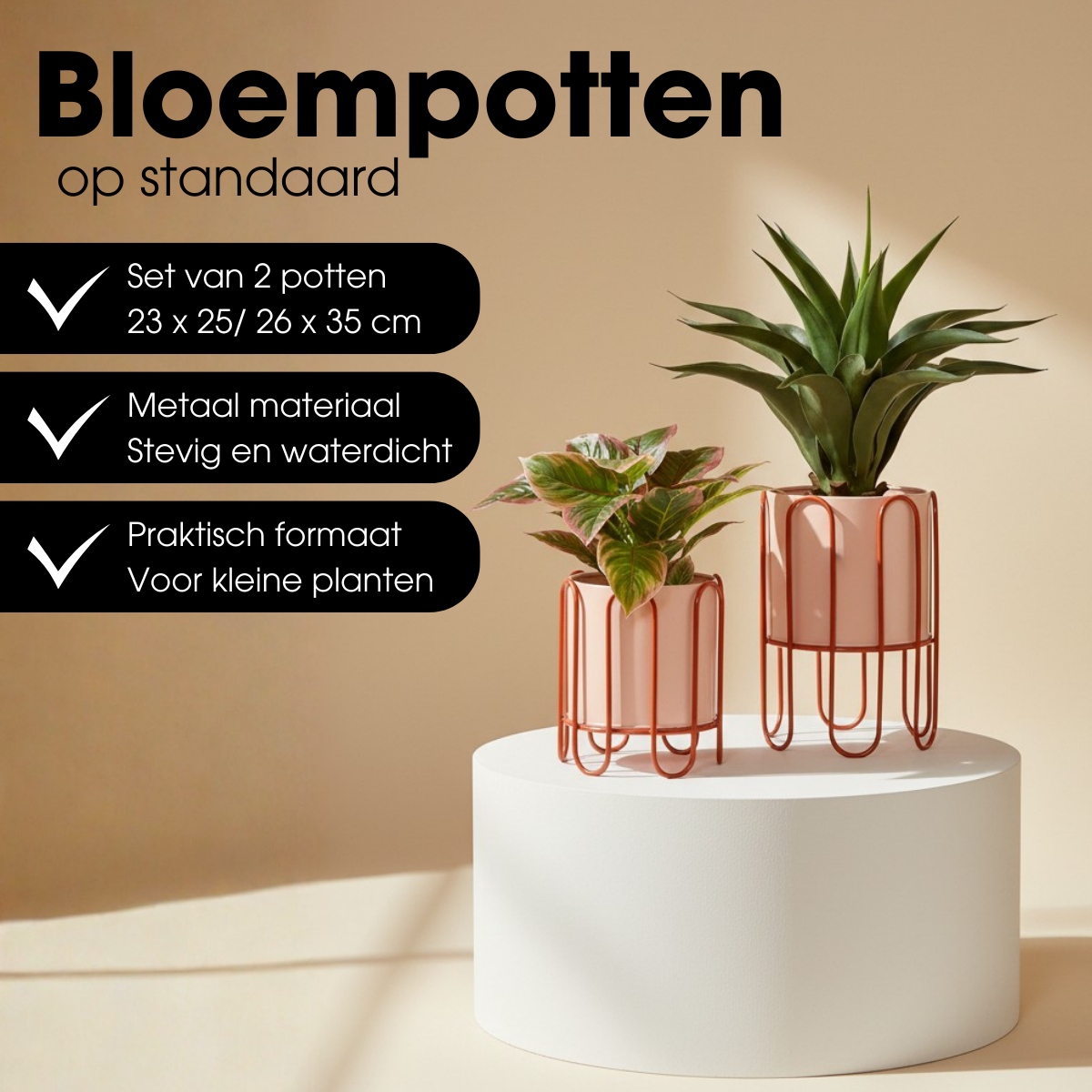 • Set: 2 Blumentöpfe auf Ständer